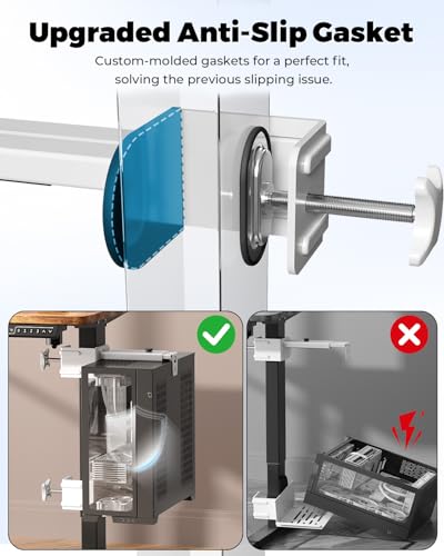 Upgraded Silicone Gasket: Solves previous pain points – upgraded with enhanced gaskets. This standing desk tower mount stays firmly in place, no more slipping or falling