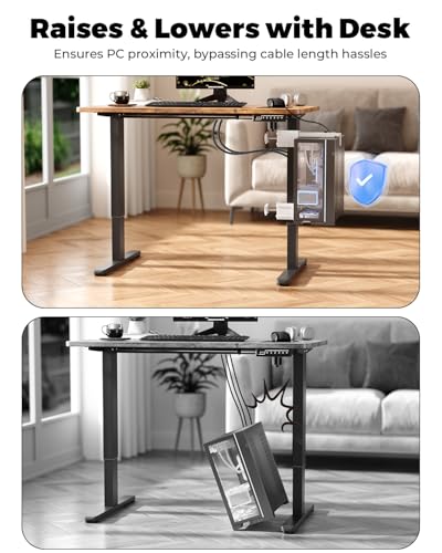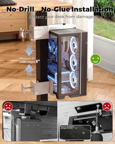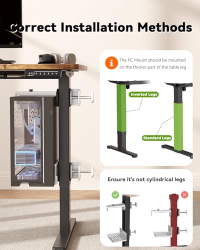 Wide Adjustable CPU Hanger: Fits most PC cases (5.9" – 9.8" wide), perfect for standing desks, works best with inverted legs, not compatible with round legs