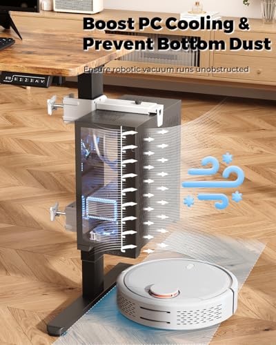 Heavy Duty PC Holder: Made of thickened steel, strong enough to hold up to 44 lbs. Elevated position improves airflow and reduces dust intake compared to floor placement