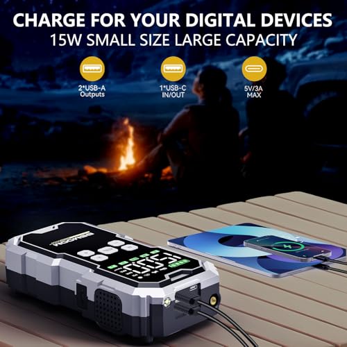 ➤【PORTABLE POWER BANK】Serving as a versatile power bank, this jump starter battery pack includes one USB output port (5V/1A, 9V/2A, 12V/1.5A) to charge your cell phone, tablet, Kindle, or digital camera. This added functionality ensures you stay connected and powered up while on the go.