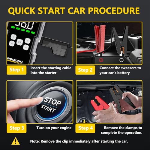 ➤【8000A PORTABLE CAR JUMP STARTER】BSMOOM’s 8000A portable car jump starter with air compressor offers up to 8000A peak current and high capacity, making it suitable for starting all gas engines and up to 10.0L diesel engines. This upgraded 2025 model is designed to handle depleted batteries and is compatible with various vehicles, including cars, trucks, motorcycles, RVs, snowmobiles, boats, tractors, ATVs, and UTVs.