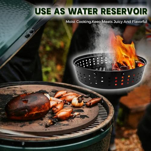KAMaster Charcoal Basket for XLarge Green Egg with Divider,Heavy Duty Carbon Steel Fire Bowl with Removeable Water Reservoir Compatible with XLarge Green Egg,Charcoal Ash Basket with Foldable Handle