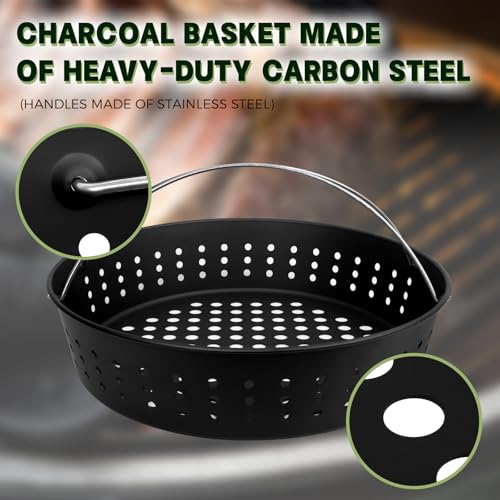 - 【HEAVY DUTY CARBON STEEL CHARCOAL BASKET】The basket manufactured from heavy-duty carbon steel,the handles manufactured from stainless steel.High quality materials that are not easily deformed.The surface is treated with rust prevention to prevent rusting.A very durable charcoal basket.