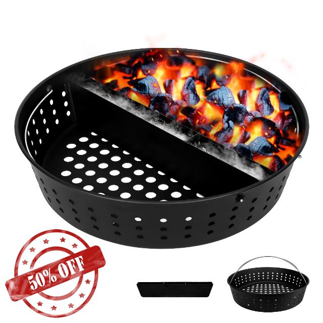 - 【FIRE BOWL FOR XL WITH REMOVEABLE DIVIDER】The XL charcoal basket include a divider for 2-zone charcoal burning.Use this divider,chef can use half of the area and concentrate the firepower to cooking.Remove this divider,you will gain the largest area of charcoal burning area, with the most intense firepower for long-term grilling/low&slow cooking.