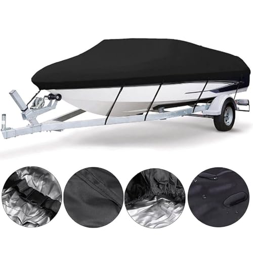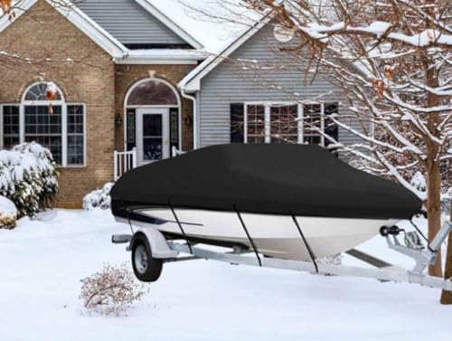 - ⛵【Durable Material】— Made of strong and durable Oxford with PU coating, this boat cover offers greater durability and water resistance. It provides the best and most effective protection against dust, dirt, UV rays, snow, rain, bird droppings, scratches, and other damage. Keep your boat in good condition at all times