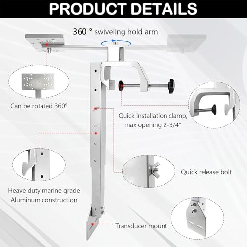 Enhance your fishing setup with a reliable fish finder mount featuring a sturdy holder and adjustable bracket. Enjoy seamless 360° rotation and great height settings to meet your specific requirements. Whether you’re fishing from a kayak or boat, this mount is ideal for marine use in both freshwater and saltwater conditions. Designed for durability and adaptability, it supports consistent performance during every outing.
