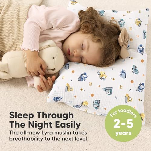 - 13×18 Toddler Pillow with Pillowcase – Highly anticipated addition to KeaBabies Toddler Pillows, My Little Lyra muslin cotton pillowcase with toddler pillow offers enhanced breathability and ergonomic support for sleep, travel and daily comfort.