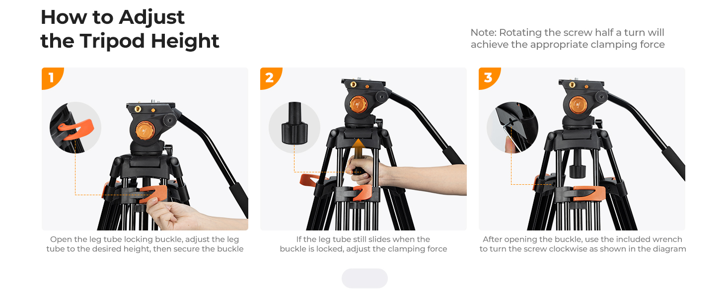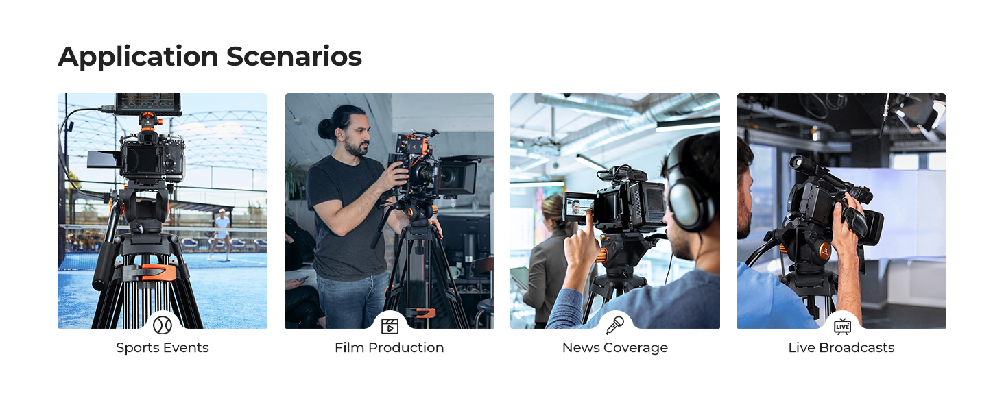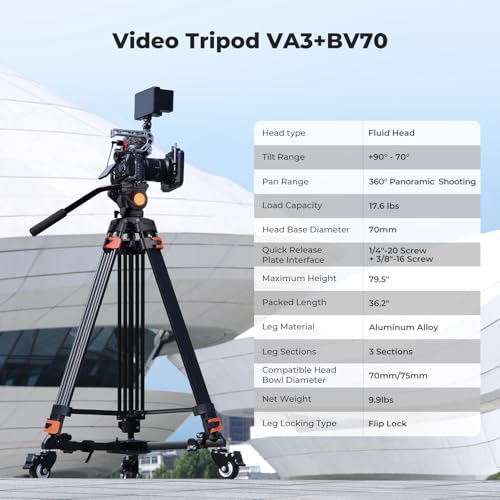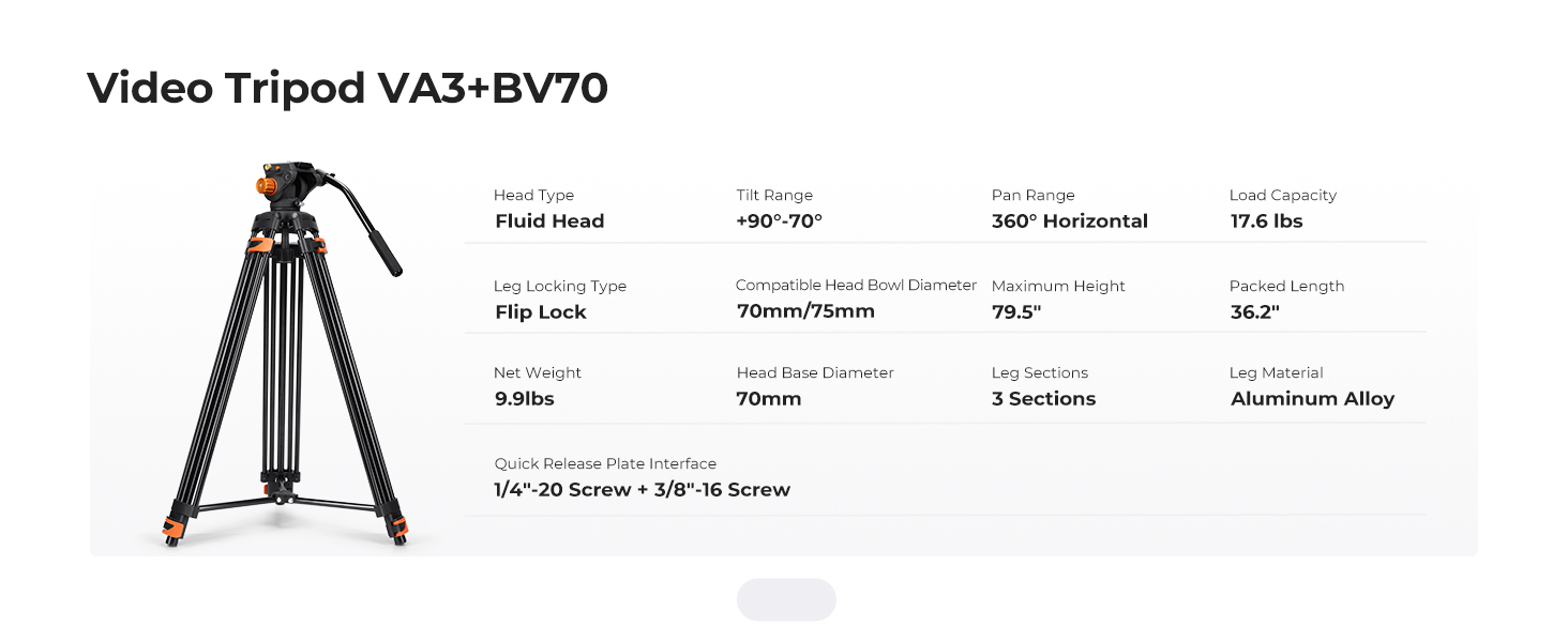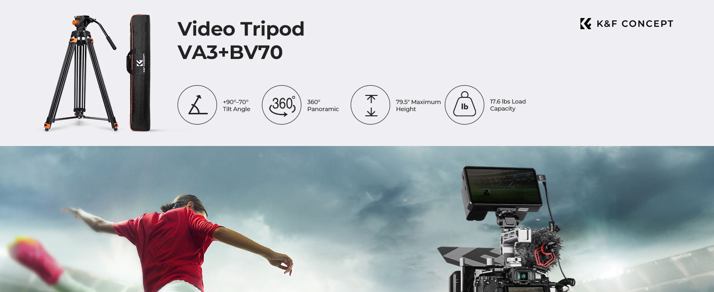 【Fluid Head】This fluid head supports 360° horizontal pan and -70°/+90° vertical tilt, enabling diverse shooting angles and providing video creators with stable footage. Also includes detachable handle for a different dominant hand.