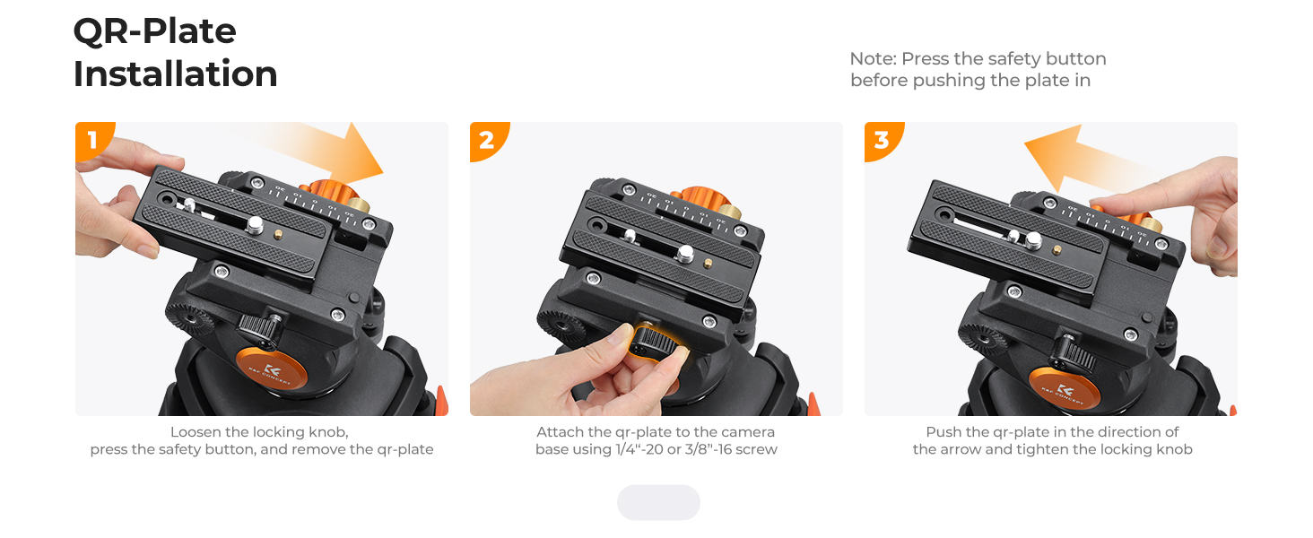 【Wide Compatibility】The large quick release plate with 1/4" and 3/8"-16 screw is compatible with Canon Nikon Sony and other DSLR cameras and camcorders. It can also compatible with Camera slider for effortless movement during filming.