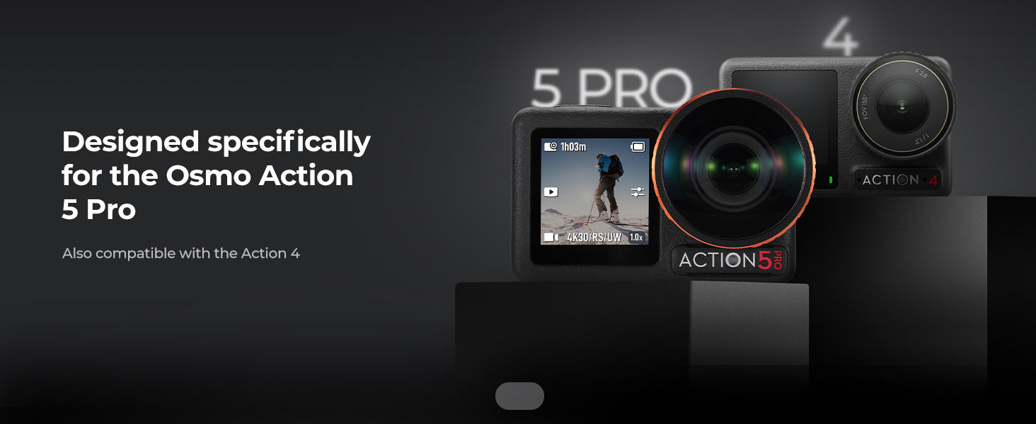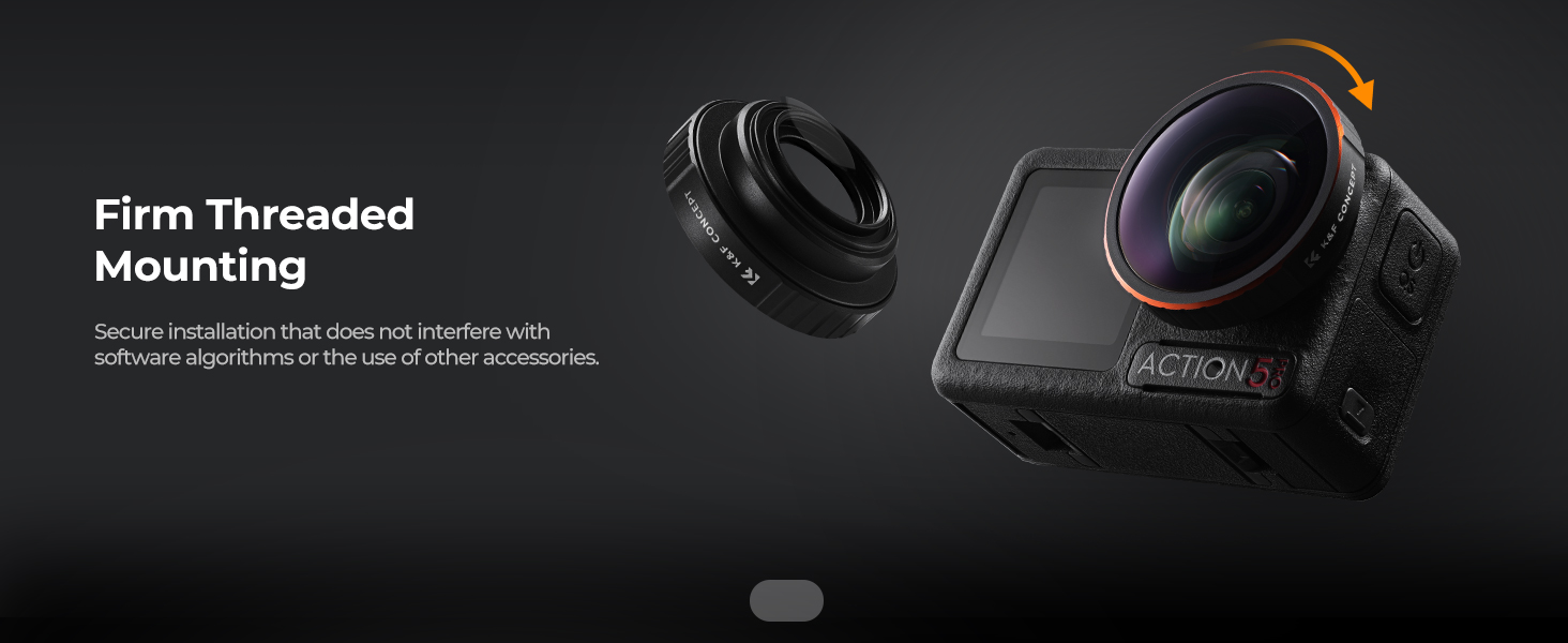 【Perfect Compatibility with DJI Osmo Action 5 Pro & Action 4】Designed specifically for DJI Osmo Action 5 Pro and Action 4 cameras. Features a secure threaded installation—just like the original lens—ensuring a stable fit without interfering with camera functions or accessories.
