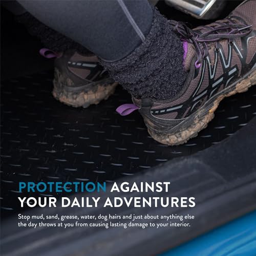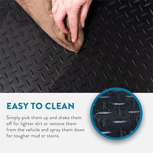 HEAVY-DUTY DESIGN: Made from super durable, 100% waterproof rubber, these mats are designed for heavy use, from daily wear and tear to weekend adventures. The non-porous material also stops liquid or mud from reaching your carpets. Easy to clean? You bet! Simply pick them up and shake them off for lighter dirt or remove them from the vehicle and spray them down for tougher mud or stains