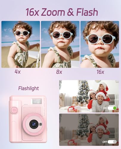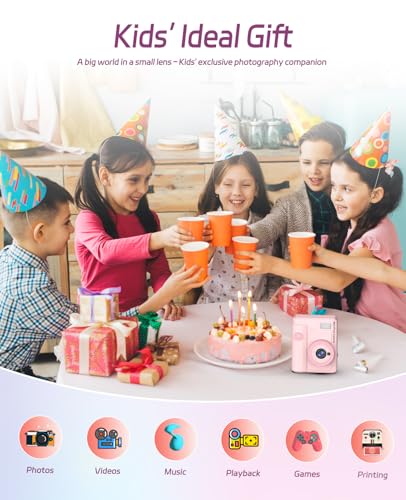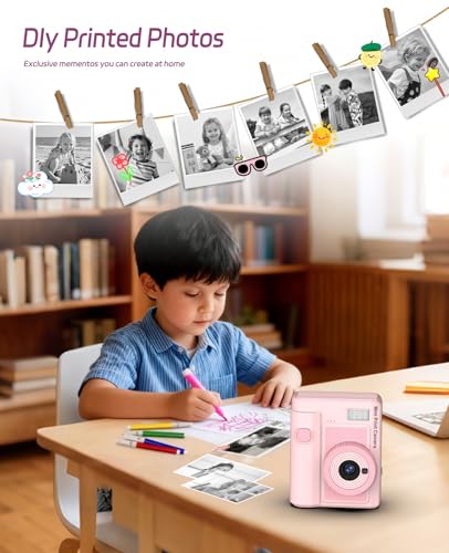 Kids Camera Instant Print, 1080P Instant Digital Print Camera for Kids with 32GB Card & 3 Rolls Photo Paper. Christmas Birthday Gift Toys for Toddler Boys Girls Age 3-12(Pink)