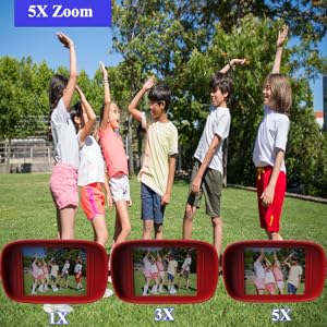 - 【Perfect Christmas Birthday Gifts for Boys and Girls】 This functional camera for kids will be the perfect christmas gifts for boys and girls. This kids camera supports 5X zoom, You can record exciting activities during the day and observe animals at night, explore the world in the dark they have never experienced before. Boys and girls will like this toy gift, whether it is on birthdays or Christmas and other holidays.