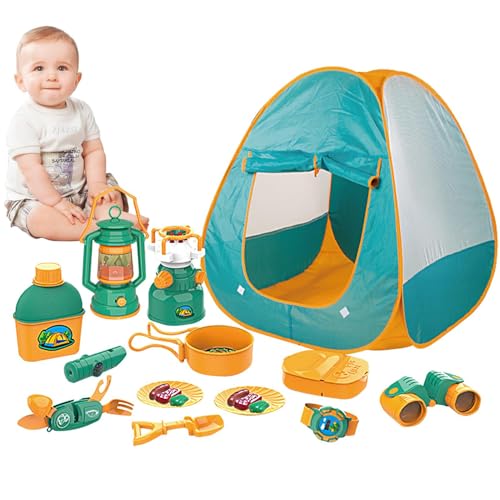 Kids Camping Tent Set – 21pcs Bright Polyester, Adventure Tent Kit, Pretend Play Set | Camping Gear Stove Telescope, Backyard Indoor Exploration Games, For toddleres Imaginative Play Experiences