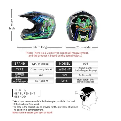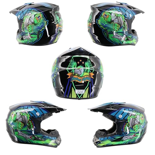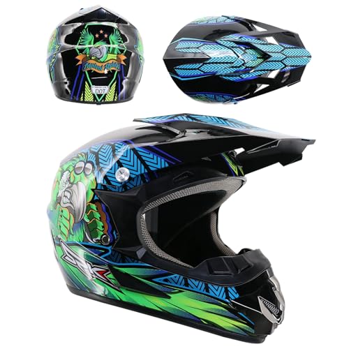 - WHAT YOU WILL GET: Motocross Helmet, protective glasses(One Size), gloves(One Size), mask(One Size), a total of 4 pieces. Best gift for motorcyclists, the ideal travel companion even for long motorcycle tours 100% Brand New! (Note: The helmet is too big for children under 6 years old)