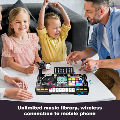 - Encourages Musical Expression:Realistic design, including microphone and wireless features, perfectly restores the DJ turntable with lighting effects, inspiring children to dance and become budding rockers while looking incredibly cool