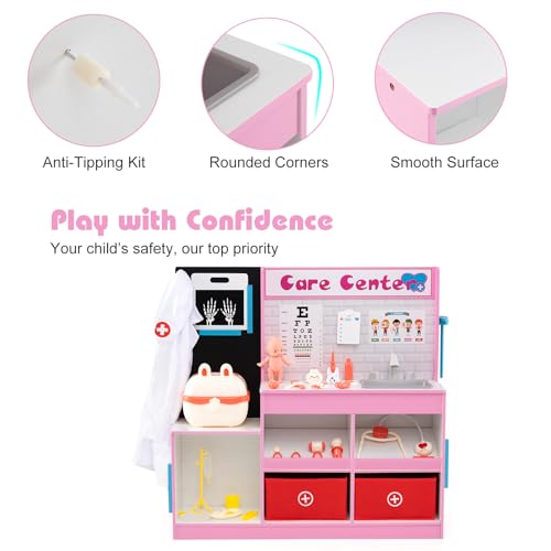 - Robust & Safe Design: The toddler doctor kit is made of thick MDF panels and features a anti-tipping device, which ensure stable flow and tipping resistance during use. Meanwhile, The rounded edges and smooth surfaces provide a safe play environment for children.