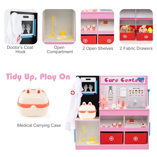 - Ample Storage Space: The pretend medical set is equipped with 4 open compartments, 2 non-woven fabric boxes and 1 hook for the doctor's coat, which facilitate the organized storage of accessories. Storage areas also help kids develop good ordering habits, keeping the room clean and tidy.