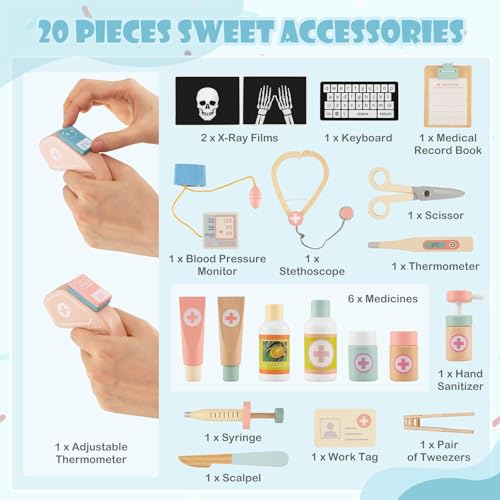 Kids Doctor Set, Wooden Children Doctor Kit with 20PCS