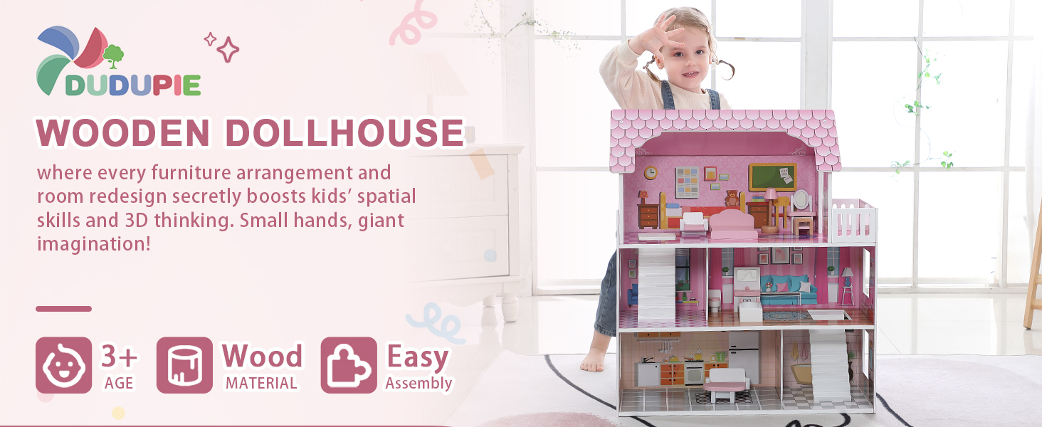 EDUCATIONAL PRETEND PLAY: Montessori-inspired toy develops language skills and social interaction. Children design layouts and role-play stories, promoting hands-on learning. With simple interlocking panels and clear instructions, parents and kids can assemble this doll house together in under 1 hours. The process enhances spatial thinking and teamwork—perfect for creating screen-free family memories.