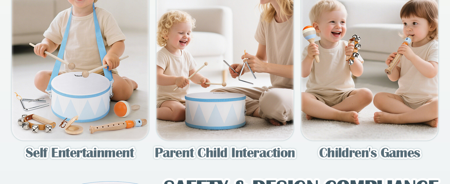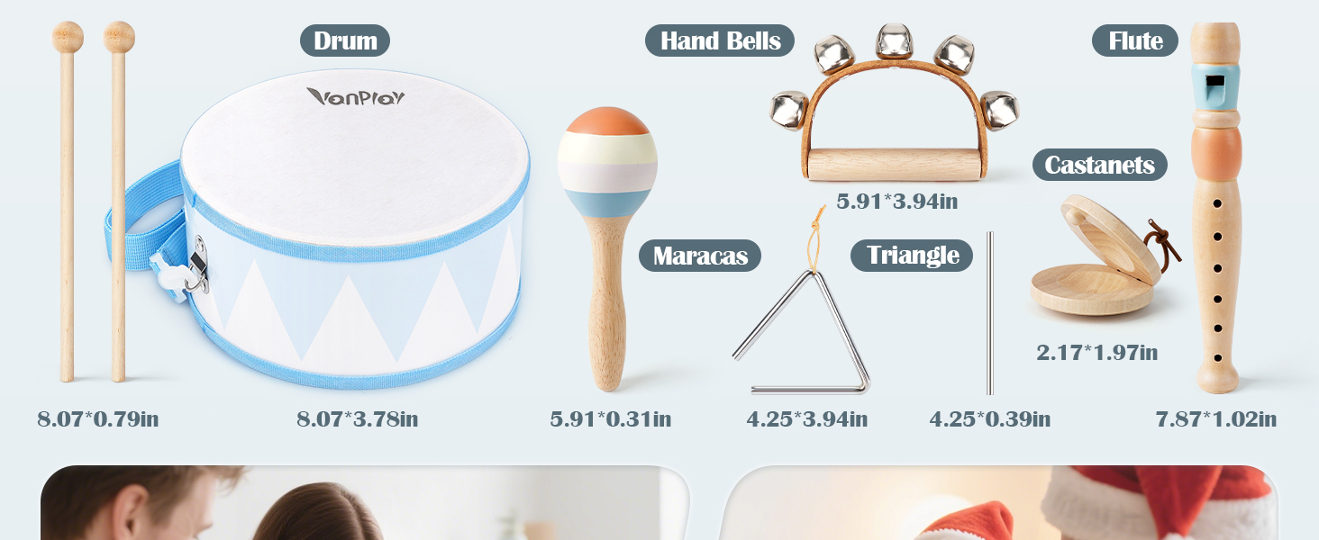 Sensory Toys: The musical instrument set is made of high-quality materials with smooth, rounded edges. From durable drums to sturdy percussion instruments, each piece is designed to withstand enthusiastic play while ensuring safety.