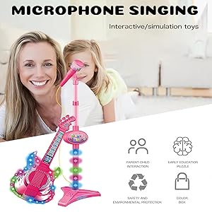 - Skill Development: By creating a fun and engaging environment for kids to explore music, our Kids Guitar and Microphones Set encourages musical interest, fosters a budding musical sense, and helps develop a talent for music