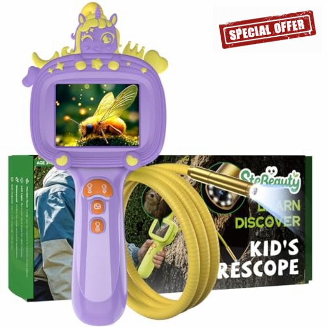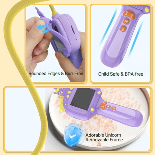 Educational Learning Toy: This unicorn-themed kids' digital borescope camera transforms nature discovery into an exciting game! Perfect for outdoor exploration, it allows kids to record insects or plant growth for school projects. It fosters observation skills and eco-awareness. Ideal for use at home, school, beach, or during travel and camping. As the perfect STEM toy and an excellent choice for boys christmas gifts for ages 3+, it's a unique birthday gift for both boys and girls.