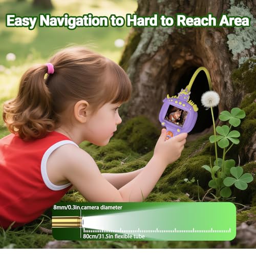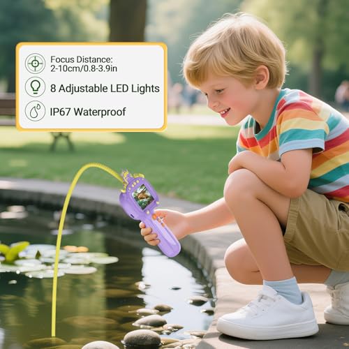 Exploration-Ready Waterproof Design: This kids' underwater endoscope inspection camera comes with an IP67 waterproof-rated flexible tube (80 cm / 31.5 inches) for safe exploration of puddles, streams, and damp caves. The 8 mm / 0.3-inch lens diameter allows access to hard-to-reach areas, making it suitable for various scenarios. Note: The camera tube is waterproof, but the main unit is not.