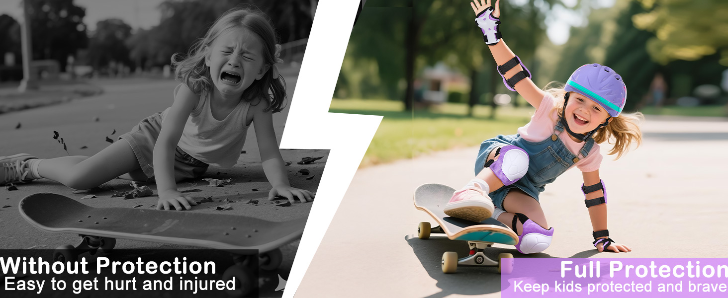 Full Protection: This kids helmet 3-5-8 is designed with a tough PC shell and shock-absorbing EPS foam, featuring extended protection over child's forehead, top, and back of the head for improved impact safety; The kids scooter helmet comes with knee pads set for full-body protection
