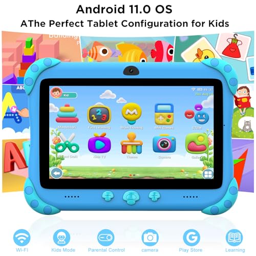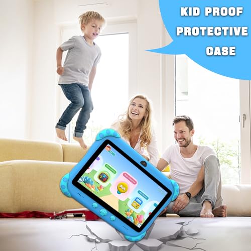 Kids Tablet Android 7 inch Childrens Tablet for Kids with WiFi Dual Camera Parental Control 32GB ROM 128 GB Expand Toddler Tablets with Kid Software Educational Games Ages 3 to 7 Years (Blue)