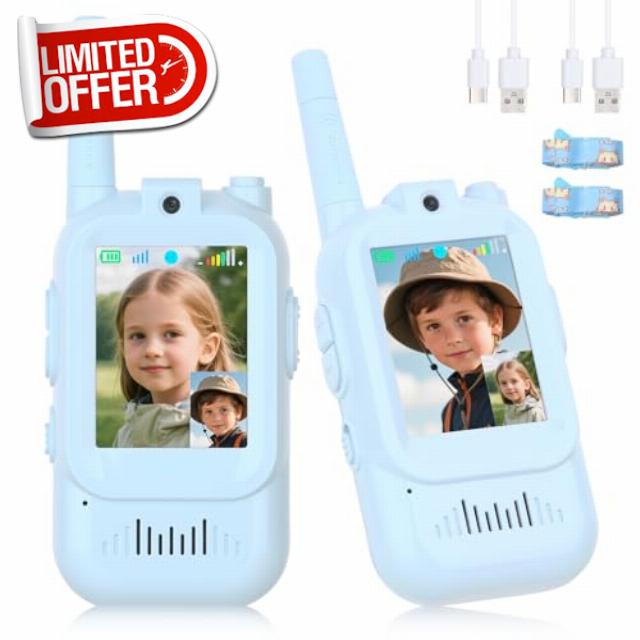 Kids Toys Mini Video Walkie Talkies for Kids 2 Pack,for 3 4 5 6 7 8 Years Old Boys and Girls,Four Sound Effects Available Birthday Gifts(BLUE+BLUE)