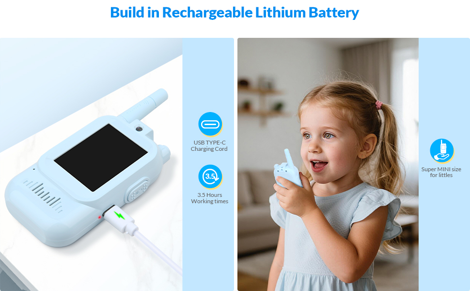 - 【Safe and Rechargeable】Made of durable materials, equipped with rechargeable lithium-ion batteries, these walkie talkies are environmentally friendly and perfect for endless fun.