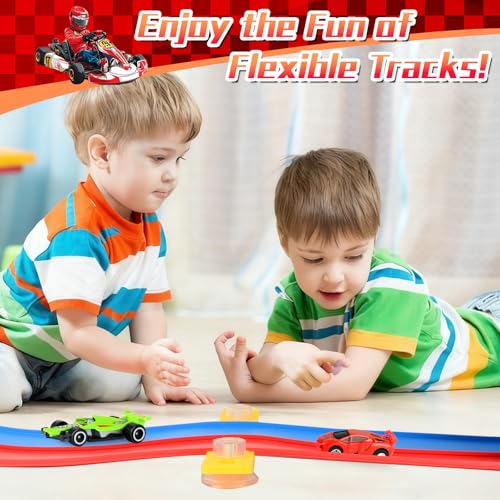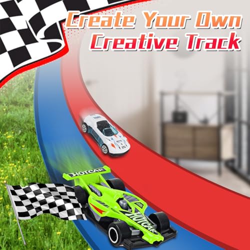 Expanding the World of Racing: This flexible racing track is not only compatible with the included toy cars but also with all 1/64 scale die-cast car models. This means you can create a fully customizable and expandable racing experience, growing as your child's collection of toy cars increases