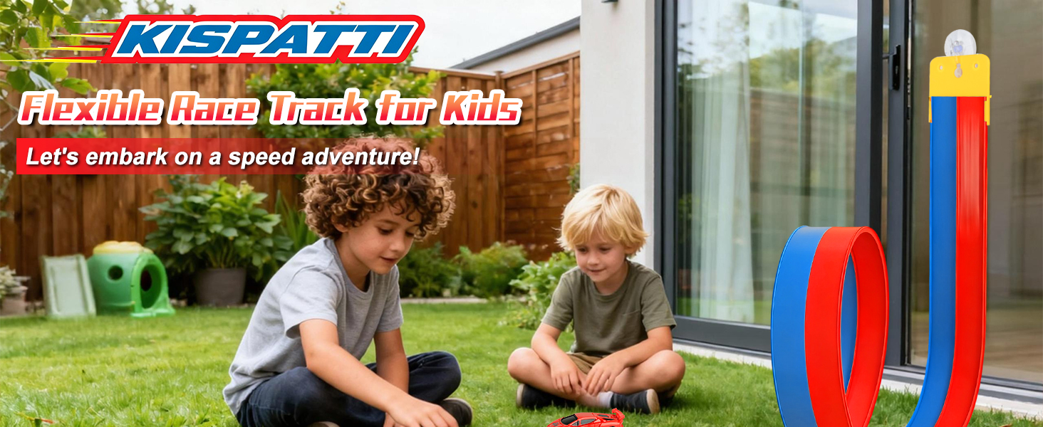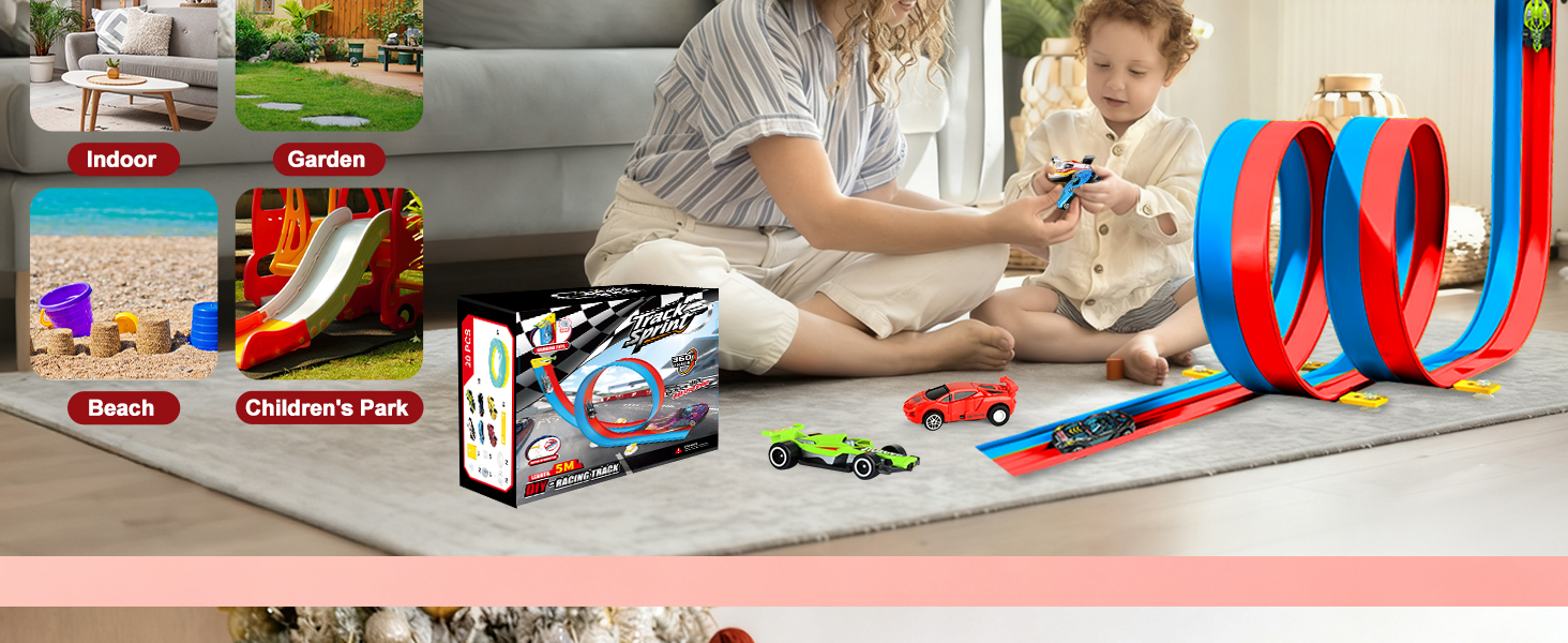 5M Flexible Kids Race Track: This soft and flexible track toy allows for customizable layouts, creating tracks such as staircases, wall ramps, curves, and loops. The dual-color design enriches the visual experience. Whether racing alone or against friends, you'll have endless fun! Race with your friends on this super-long track