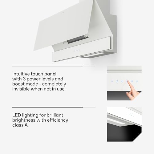 - SLEEK TOUCH CONTROLS: Effortlessly adjust your angled cooker hood with invisible touch controls on glossy glass and matte accents for a modern kitchen appearance.