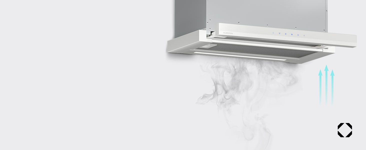 Breathe easy and cook in style. The Klarstein Velaire 60 cm telescopic cooker hood blends minimalist design with serious extraction power, so your kitchen stays fresh without the fuss. With its sleek mix of matte and glossy glass, extendable front and invisible touch controls that appear only when you need them, it looks clean, modern, and effortlessly premium.