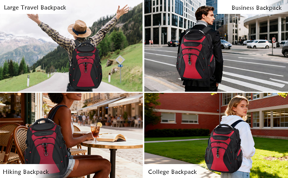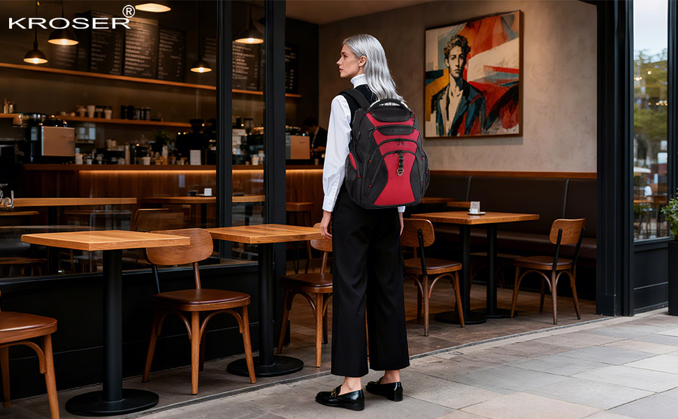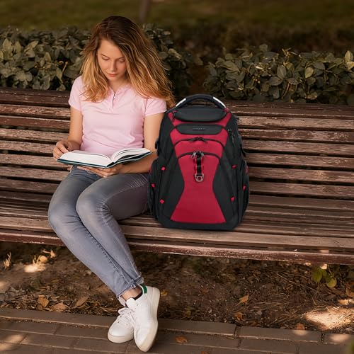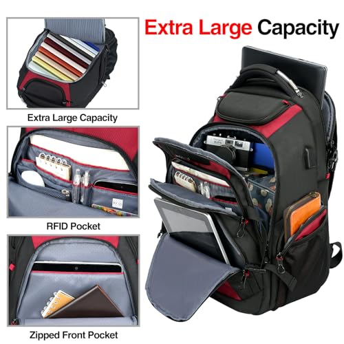 KROSER Travel Laptop Backpack 17.3 Inch XL Computer Backpack with Hard Shell Saferoom RFID Pockets Water-Repellent Business College Daypack Stylish Bag for Men/Women-Black Red