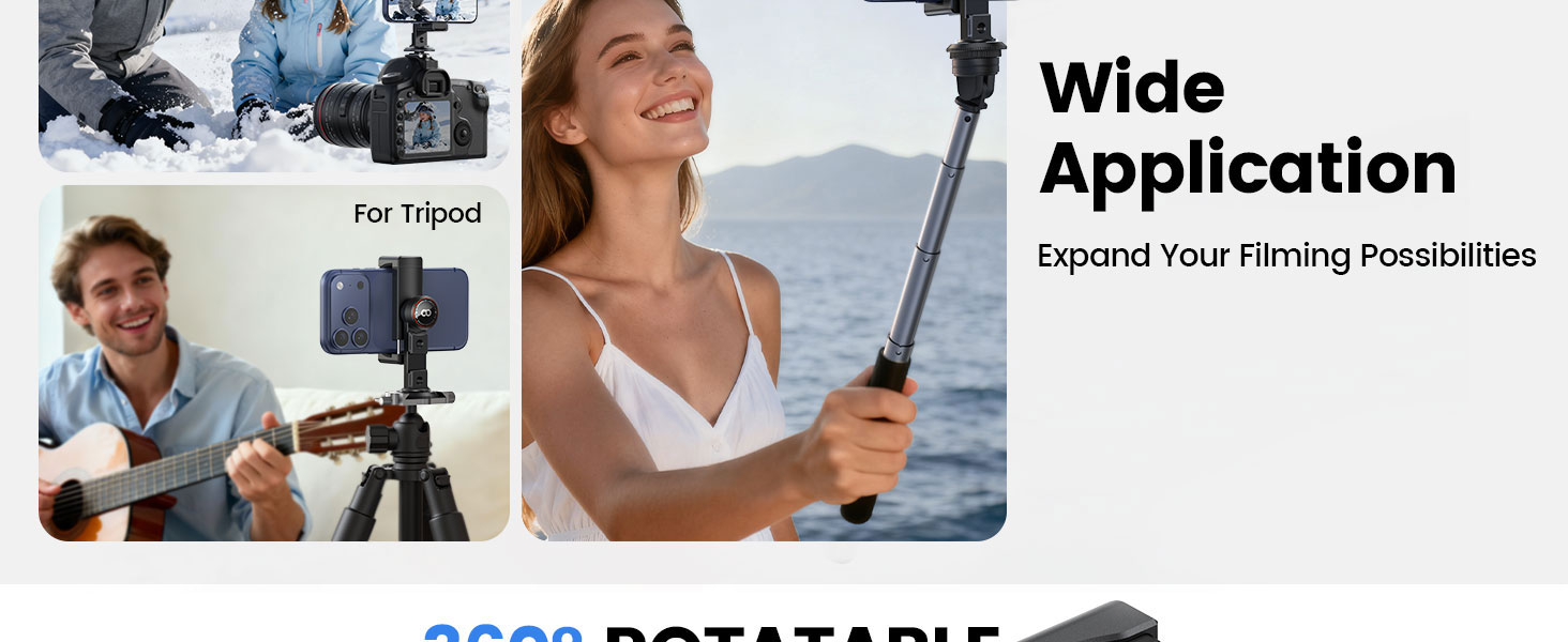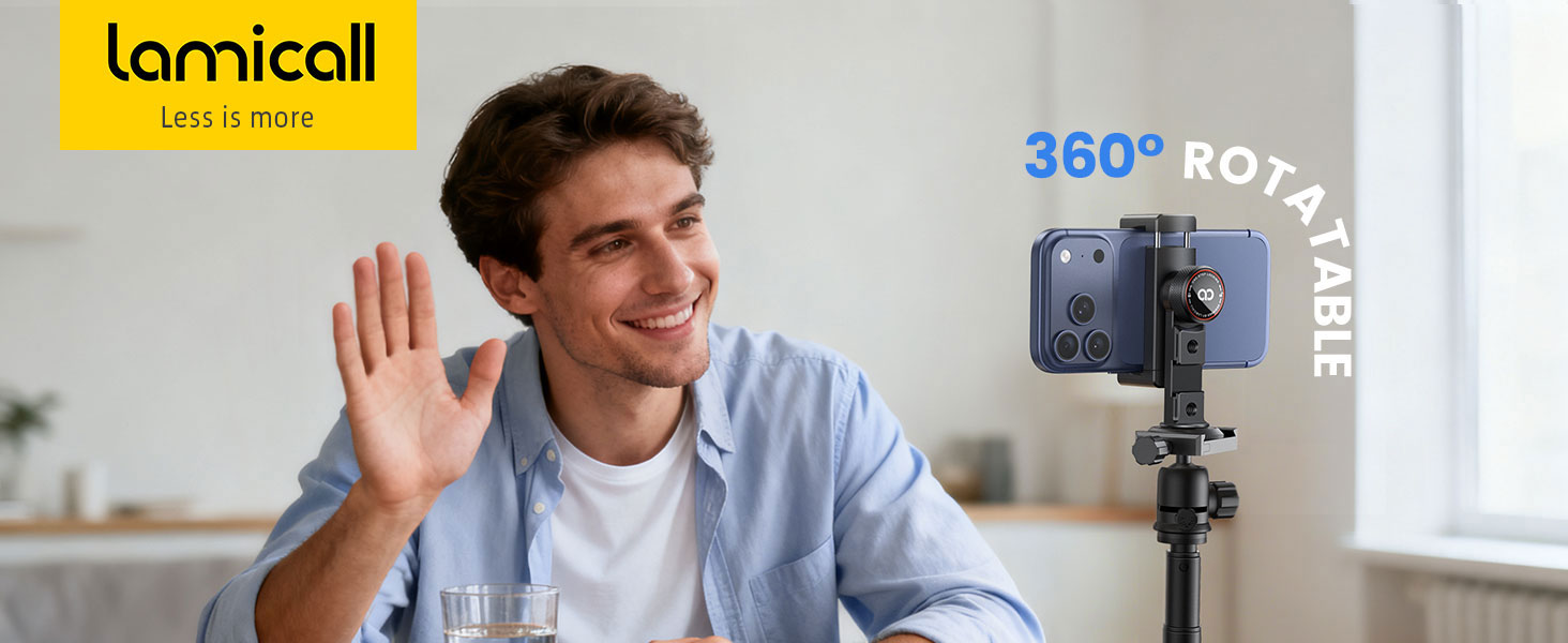 - 【2-in-1 Locking Knob & 360° Rotation】 This phone mount for tripod features a 2-in-1 locking knob design that locks width and angle simultaneously. Rotate the knob anticlockwise until fully loosened to freely insert/remove your phone, or rotate the holder. Once it's been adjusted to the desired position, rotate the knob clockwise until fully tightened to simultaneously secure both width and angle. And it allows 360° free rotation, smoothly switching between portrait and landscape modes.