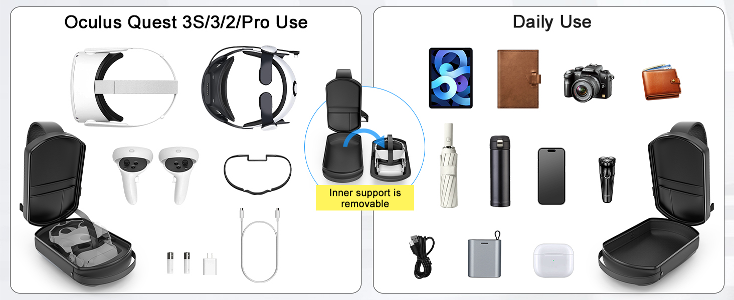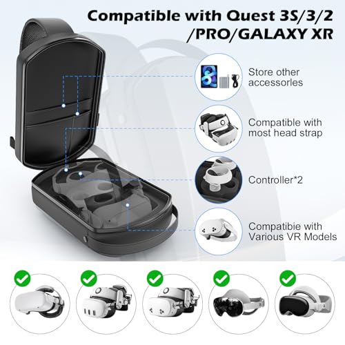 - Unmatched Compatibility: Seamlessly compatible with Quest 3S/Quest 3, this large case quest 3s also fits most third-party headsets on the market. As a meta quest 3 large case, it provides a snug fit for all your essential accessories, ensuring everything remains securely in place and is effortlessly accessible whenever you need it.