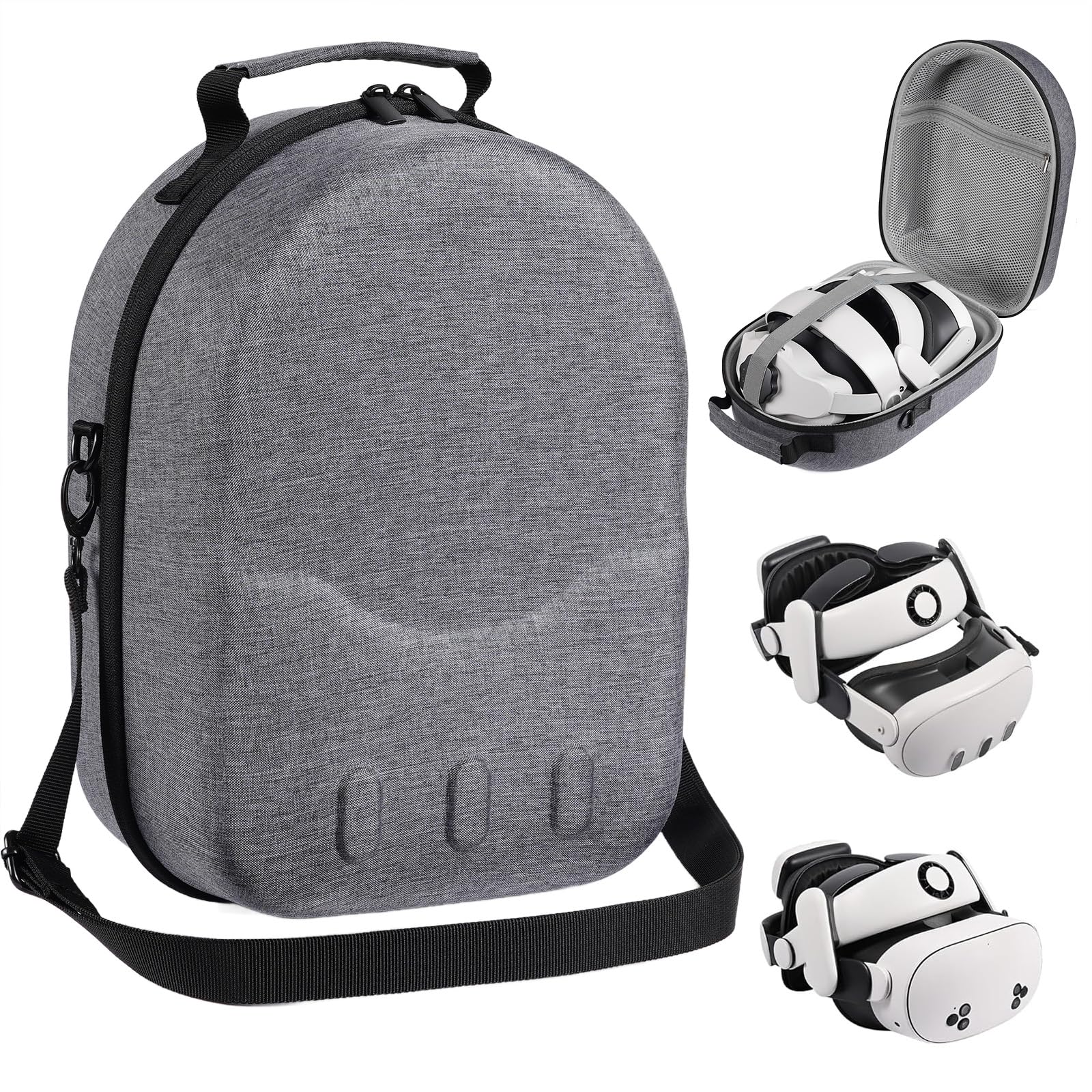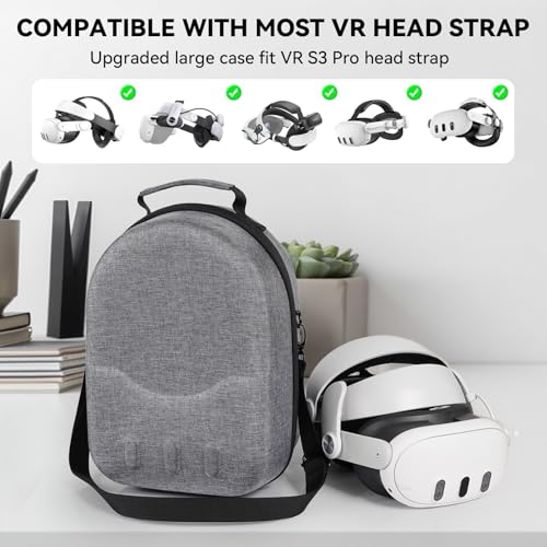 Large size Case for Meta Quest 3/3S, Compatible with Meta Quest 3/3S VR Headset, Controller Grips, Compatible with Battery Elite Strap, controllers and accessories Hard-shell travel storage case-Grey