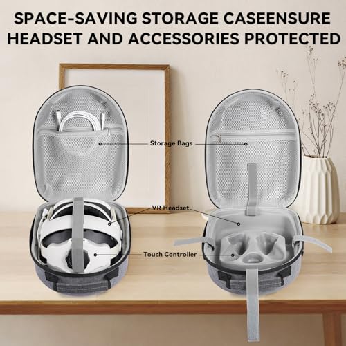 - ✅Customized Storage: Designed with dedicated compartments, the carrying case offers organized storage for your Meta Quest 3/3S headset, controllers, cables, and other accessories, keeping everything neatly in place. ensuring a perfect fit and safeguarding them from scratches, bumps, and accidental drops. (This product only includes the case, no VR machine included)