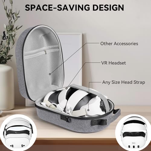 - ✅ Ample Space: Perfectly compatible with Meta/Oculus Quest 3/3S with Elite Strap. The interior of the organizer has a spacious design that provides ample storage space , Perfectly fit for the device and accessories like Elite Strap, Head Strap with Battery, Controllers charging cable, power adapter and 16ft Cable.to keep your belongings organized. A dedicated mesh pocket keeps small items organized, making it an all-in-one solution for home storage and travel.