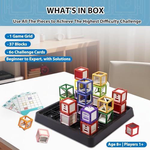 - 【WHAT'S IN THE BOX】 60 x Challenge Card, 37 x Blocks, 1 x Game Board , 1 x User Manual. Rounded chamfered corners to prevent children from scratching. Non-toxic material makes the laser montessori kits safer. Note: Don't aim the laser shot at eyeballs