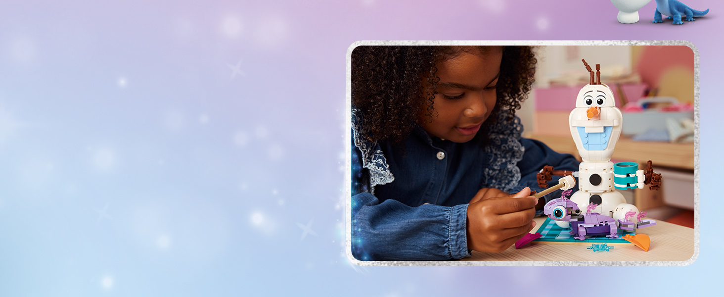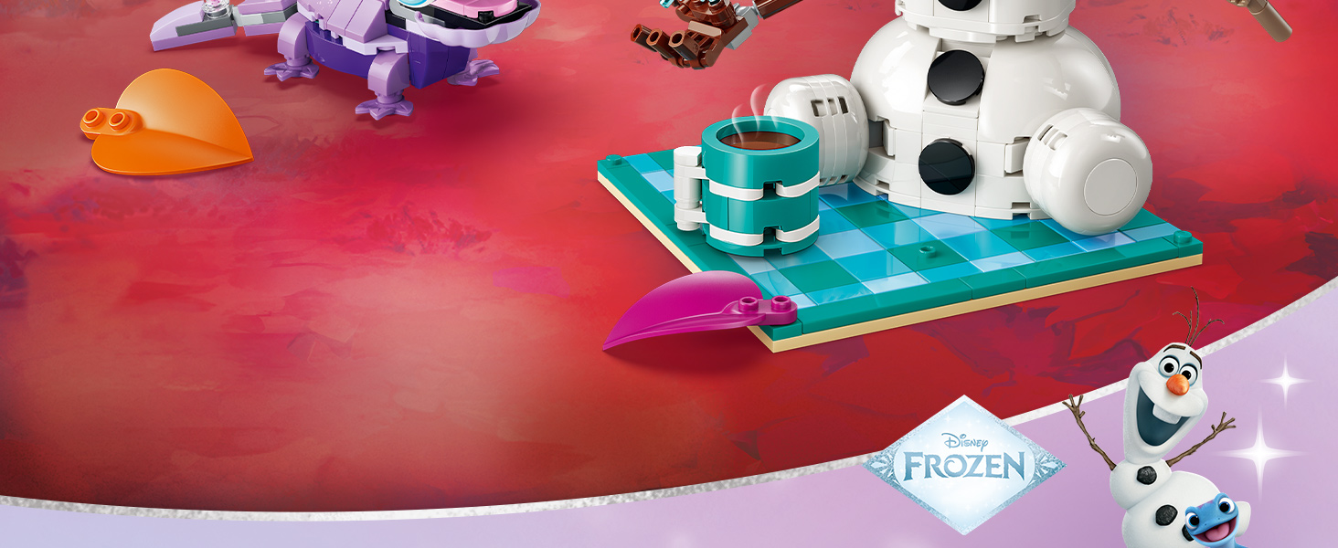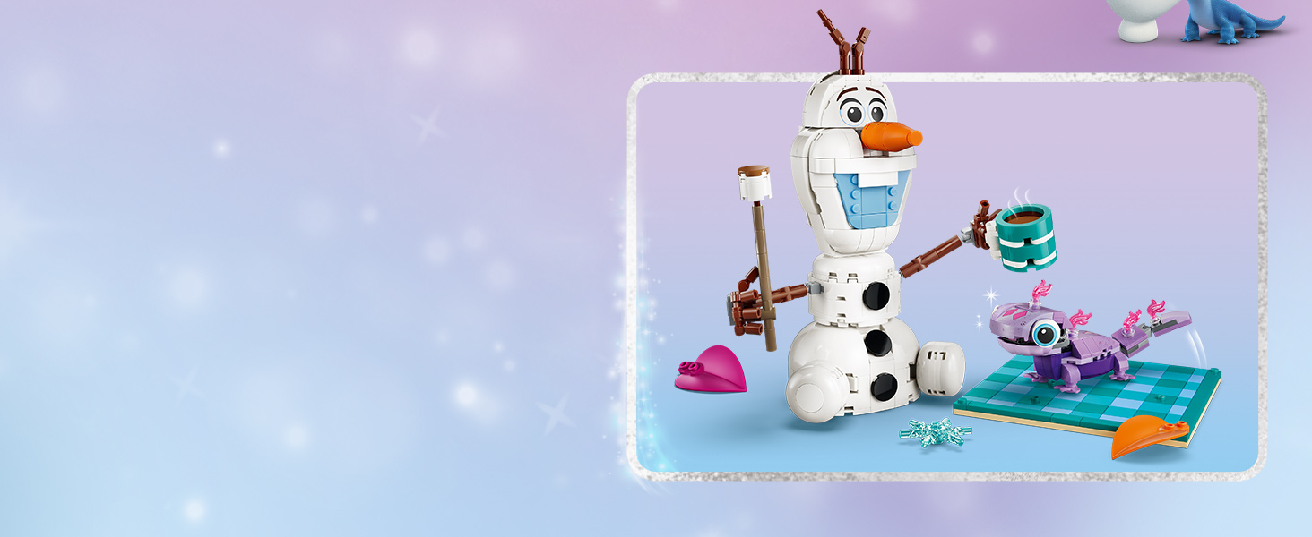 - PLAY AND DISPLAY FUN – Build Olaf the snowman and a salamander figure of Bruni with violet flames; add a cosy picnic blanket & colourful leaves to the display