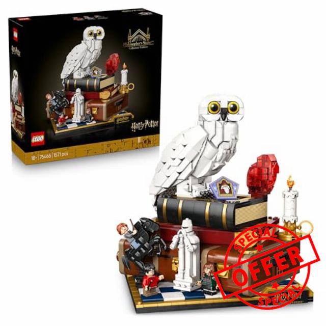 Build nostalgia for the 1st Harry Potter movie with the LEGO Harry Potter Philosopher’s Stone – Collectors’ Edition (76466) model kit for adults. This collectible building set has fun functions, iconic characters and objects, plus microscale versions of classic scenes to inspire magical memories. Create the first LEGO Hedwig snowy owl figure with closed wings and display her next to the Philosopher’s Stone on top of Harry Potter’s trunk. Add 3 LEGO Harry Potter minifigures – Harry Potter, Hermione Granger and Ron Weasley – and items including a Chocolate Frog card and a Wizard Chessboard. Turn the 3 dials to turn Hedwig’s head, move the Queen on the Wizard Chessboard and blow the side off Harry Potter’s trunk to reveal the mountain troll’s bathroom attack scene. The other microscale scenes in this Harry Potter decor set depict the Hogwarts Express and the 5 trials Harry faces to reach the Philosopher’s Stone. This LEGO building set for adults makes a magical Harry Potter gift for women and men who are fans of Harry Potter and the Philosopher’s Stone and creative building with LEGO bricks. Measures over 24 cm (9.5 in.) high, 29 cm (11.5 in.) wide and 21 cm (8.5 in.) deep Contains 1,571 Pieces.