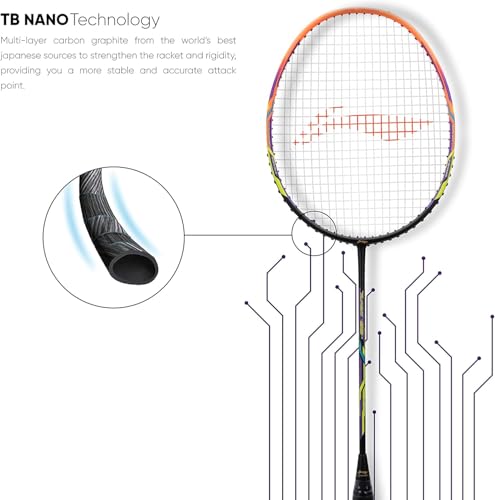 Carbon Graphite Construction: Crafted with Carbon Graphite, a material known for its strength and durability, the racket ensures a robust design capable of withstanding the rigors of intense badminton play.
