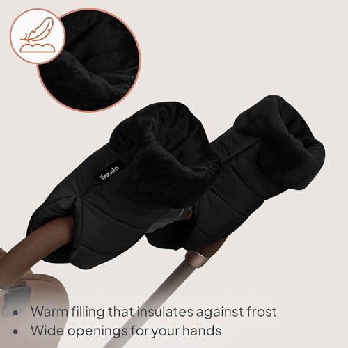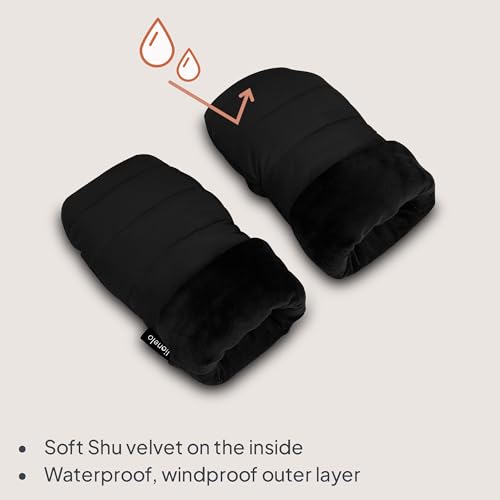 - HIGH QUALITY AND STYLE: The winter stroller gloves made of soft Shu velvet are durable and stylish. The neat stitching and the rolled edge give the pushchair a refined look.