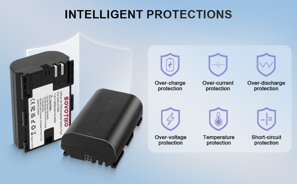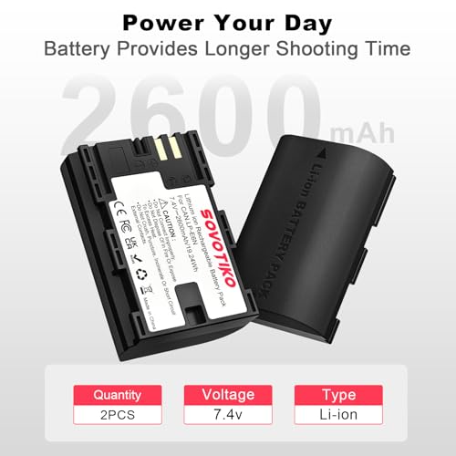 - Large Capacity For Unlimited Shooting: SOVOTIKO 2-pack 2600mAh LP-E6N batteries can give your camera up to three times the shooting time when fully charged, so you will not miss any wonderful moments and record them forever.