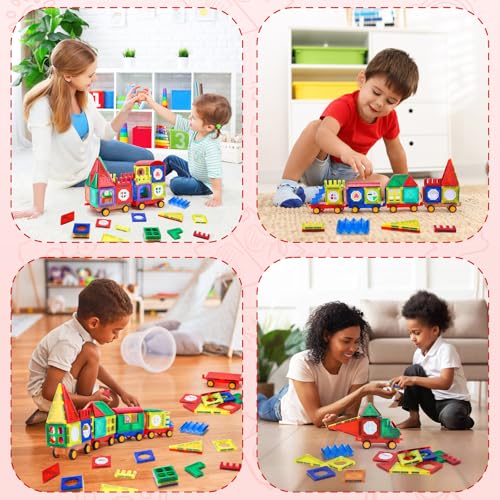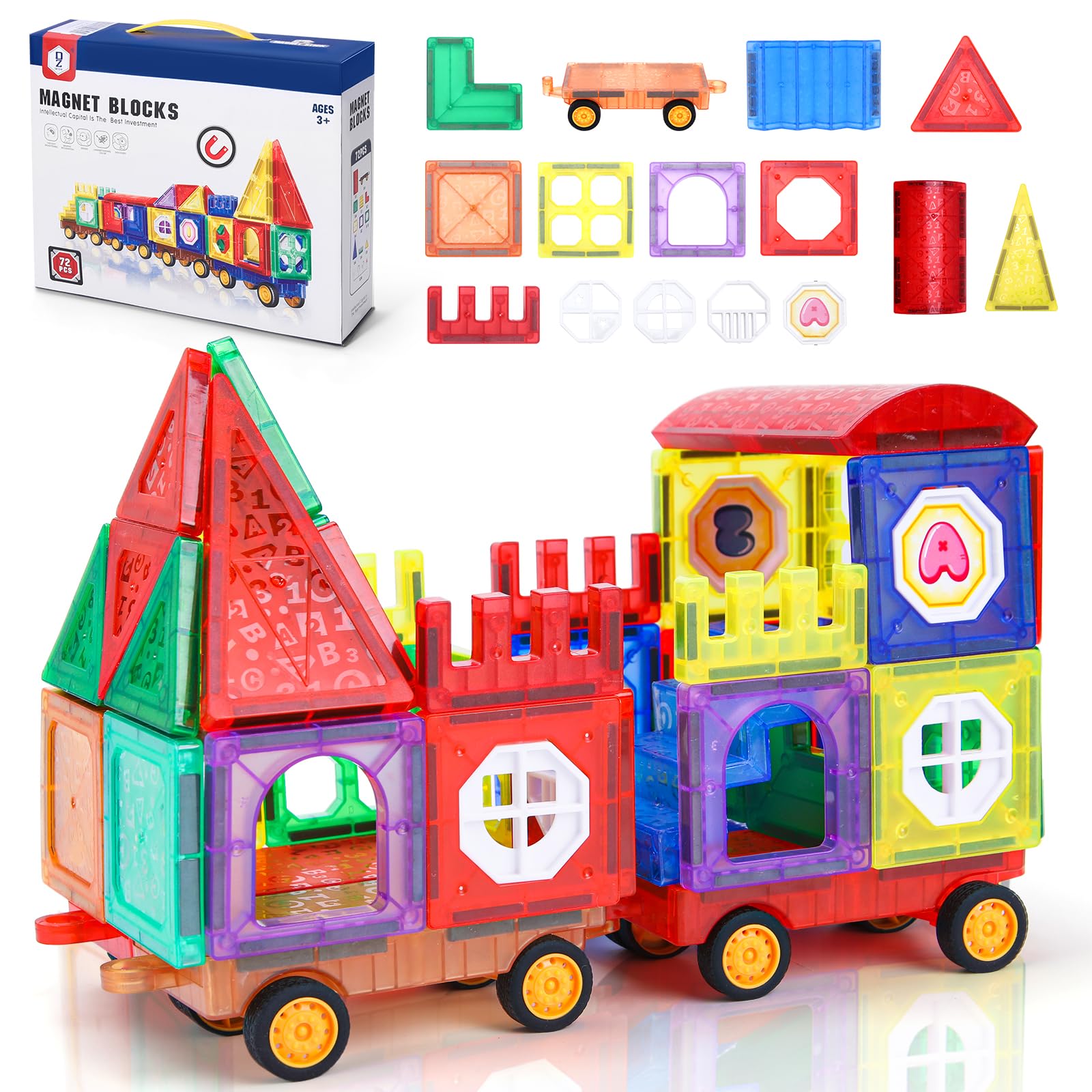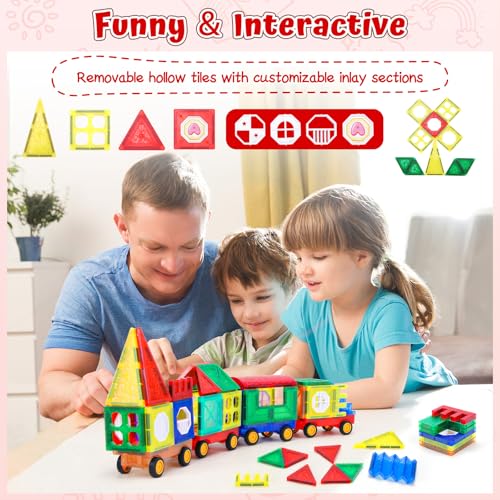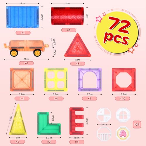 Lubardy Magnetic Tiles for Kids 72 PCS Magnetic Building Blocks Set STEM Learning Educational Train Construction Toy for Boys Girls Present Age 3 4 5 6 7 Year Old Gif