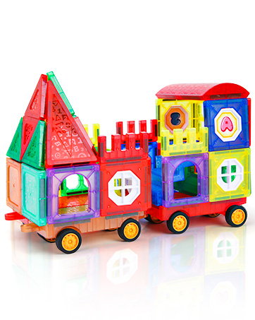 Super Value 72pcs Magnetic Tiles Set:If you're looking to spark some creativity in your child's playtime, NOT miss the 72 pcs 3D train magnetic building blocks set,which contains 72 pcs rainbow bricks in various shapes that perfect for building 2d animals, castles, mansions or mini train. And child can interact with the magnetic building bolocks in random colour to decoration 4 small cars.